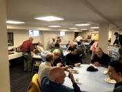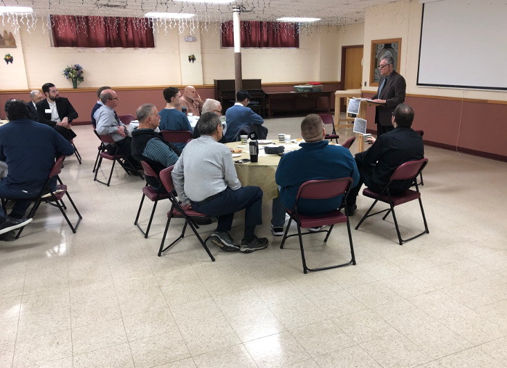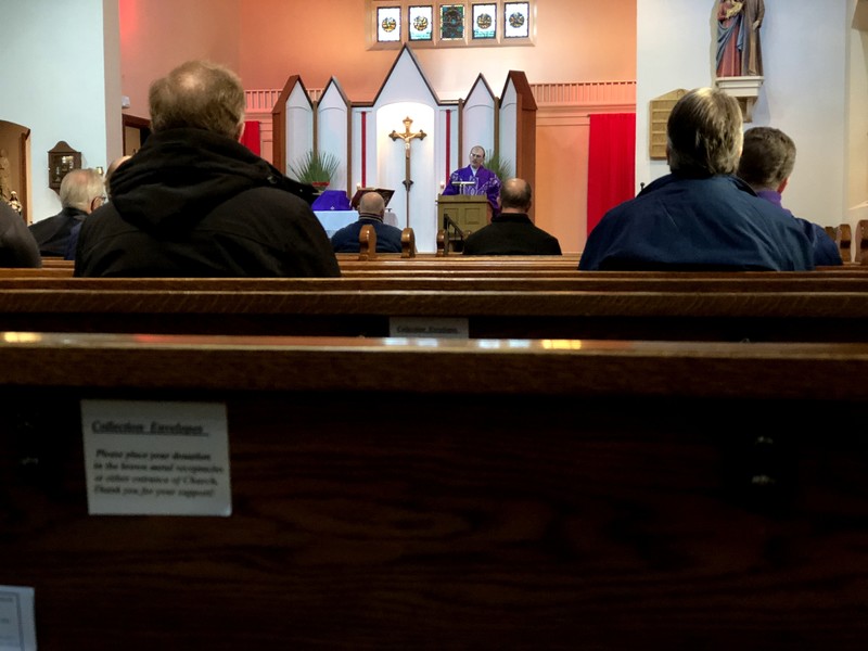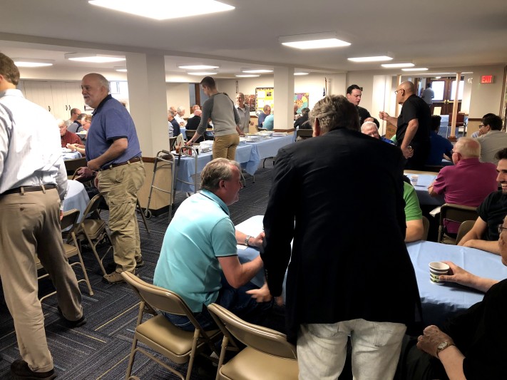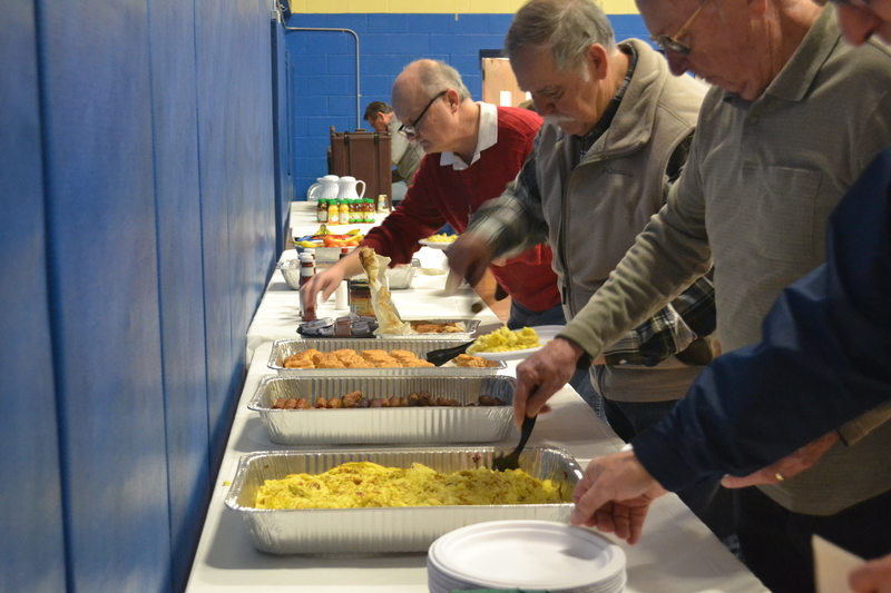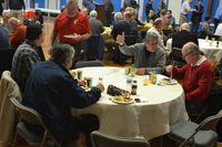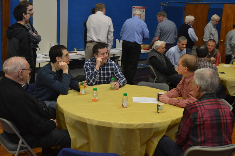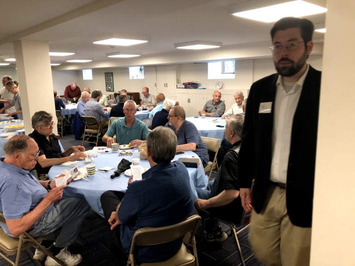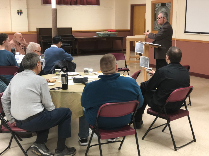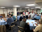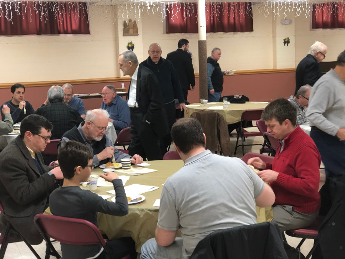 Dcn. Tom Ushold proclaims the Gospel Fr. Peter Mottola preaches the homily The men talk before the breakfast commences Breakfast is served Guest speaker Rick Paoletti delivers his testimony Guest speaker Rick Paoletti delivers his testimony